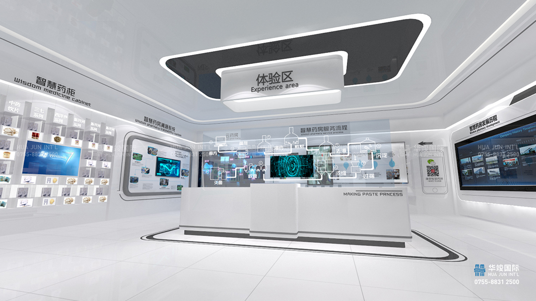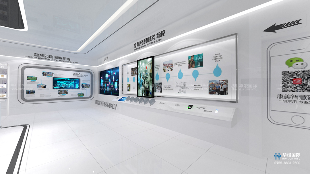 寶安康美智慧醫(yī)藥展館設(shè)計項目由華竣國際執(zhí)行整體設(shè)計施工,華竣數(shù)創(chuàng)擁有頂級展館設(shè)計團(tuán)隊和國際化的創(chuàng)新設(shè)計理念,融合互聯(lián)網(wǎng)+思維,順應(yīng)科技化趨勢,打造全新智慧多媒體展廳。